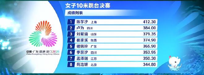 全运会女子10米跳台决赛,上海队的陈钰曦以412.30分获得冠军,鲁以384分获得亚军,刘子涵以379.35分获得季军。陈钰曦在10米跳台预赛中出现了重大失误。事实上,他在决赛中也犯了一个错误。这个错误就是207C机芯。他这个动作只得到74.25分,排名第七。不过,剩下的四招,他却是排名第一。最终,他还是引上了悬崖。陈钰曦唯一的10米跳台,全红婵也参加了比赛。当乐乐完成水花消失术锁定冠军时,全红婵在看台上鼓掌。全红婵笑得比乐乐还开心,因为这是乐乐职业生涯第一个全国赛10米台冠军。上届陕西全运会,单打10米台冠军是全红婵,东京奥运会和巴黎奥运会单打10米台冠军也是全红婵。但陈钰兮并没有放弃。他的自律程度超过了许多同龄人。最终他在全运会上夺得了第一个个人10米跳台冠军。他距离超级大满贯仅差一个奥运会单人10米跳台冠军。目前,陈钰曦在女子单打10米台上拥有以下头衔:全运会冠军、世锦赛冠军(4+3连冠)、世界杯决赛冠军(3个)。陈钰曦目前在奥运会上获得了两枚亚军。如果她能参加洛杉矶奥运会单打10米台,那么陈妍希就有希望完成超级大满贯。在全运会夺得首个单人10米台冠军后,陈妍希继续夺得奖牌。赛后他接受了广东传媒的采访。他说:巴黎奥运会之后,我面临着很多不确定性。每个人都给了我一个很大的鼓励。我的心态在改变,慢慢调整,终于走上了讲台。陈钰曦本次参加的三个项目中有两个项目获得了金牌。团体赛没有获得金牌。双人10米跳台和单人10米跳台均获得冠军。陈予曦今年20岁了。他希望在洛奥完成世界级的壮举。