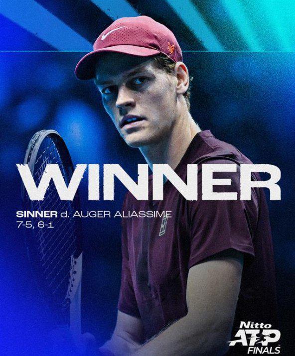 辛纳开门红 ATP年终总决赛 11-11 09:22 北京时间11月11日,ATP年终总决赛比约博格组首轮比赛中,卫冕冠军辛纳以7-5、6-1击败8号种子阿利亚西姆。本赛季他在对阵他的比赛中赢了四场。意大利人已经在室内硬地球场上取得了27连胜,并在小组赛中取得了良好的开局。